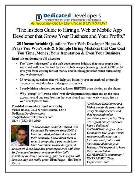 Find Out The Real Truth Why Entrepreneurs Constantly Struggle To Find The Best Development Team, And More Importantly, How To Make Sure You Select The Right Web and Mobile Development Partner For Your Company And Your Clients...